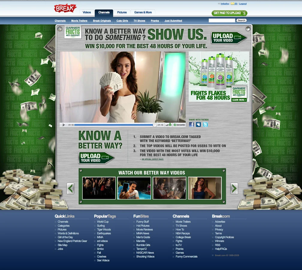 This was an online contest for Garnier Fructis Anti-Dandruff Shampoo. Consumers were encouraged to send in videos that demonstrated their "better way" of doing something. The winner won the best 48 hours of their lives—an all expense paid trip to Las Vegas for them and 3 friends.